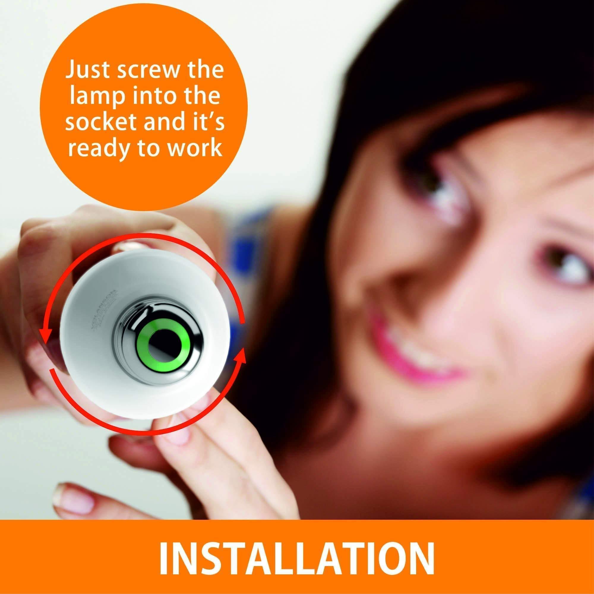 4.motion sensor led light bulb easy to install, just twist into the socket e26/e27 and turn on the switch. the motion detection bulb ready to work immediately and does not require additional devices. conventional sizes a19 e26 and a radar sensor that detect movement through the glass, allow use dusk to dawn motion sensor light or outside in enclosed lamp.